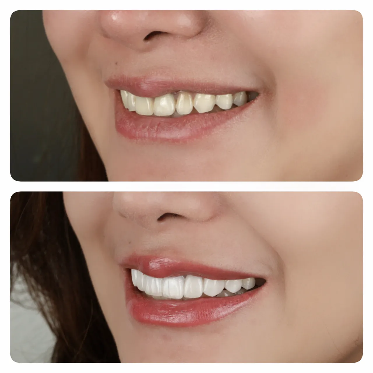 “จัดฟันเสร็จแล้วแต่ยังรู้สึกว่ายิ้มไม่สุด พอทำวีเนียร์เพิ่ม รู้สึกว่ารอยยิ้มสมบูรณ์ขึ้นมากค่ะ”