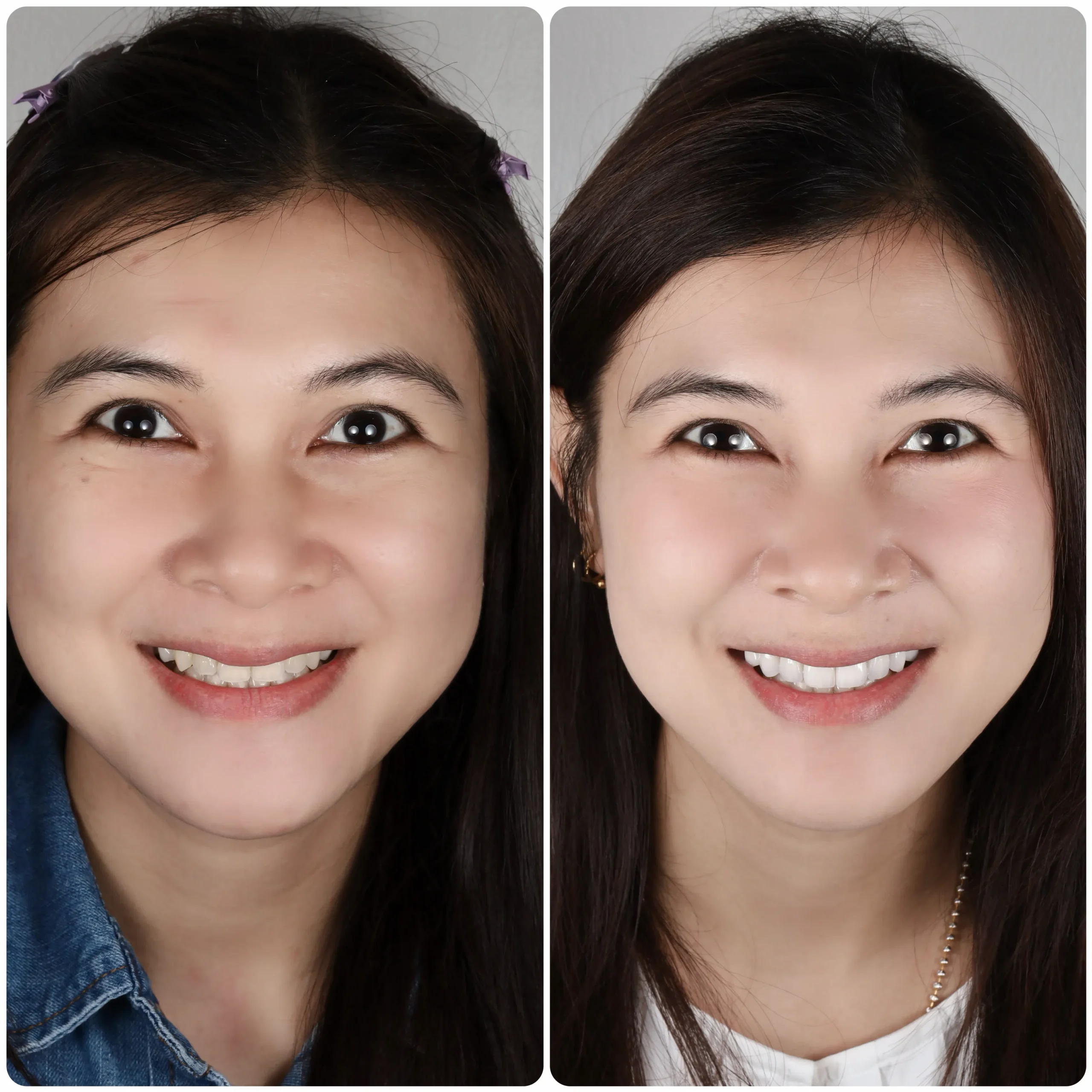 “ฟันห่างมานาน ไม่คิดว่าจะแก้ได้โดยไม่ต้องจัดฟัน หมอเนยออกแบบให้ฟันดูพอดีมาก ยิ้มแล้วละมุนขึ้นจริง ๆ ค่ะ”