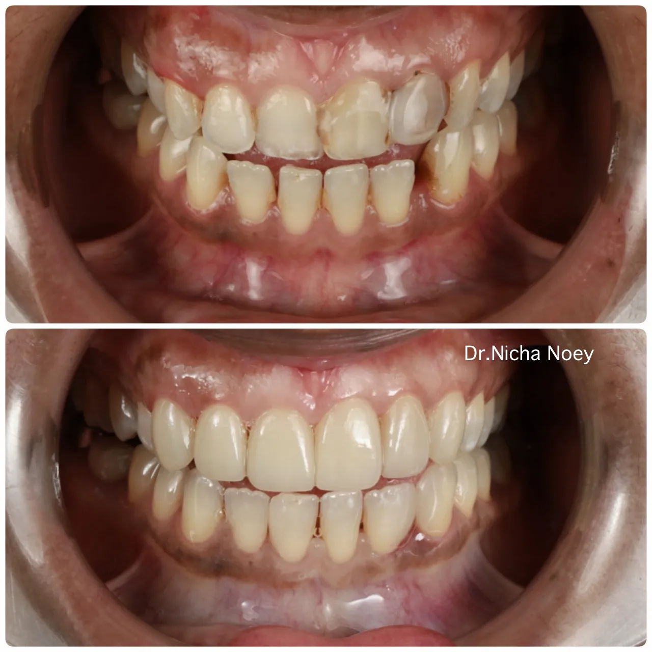 เจอเคสแบบนี้บ่อยมาก ถึงฟันจะเรียงตัวดีแล้ว แต่ถ้า รูปร่างฟันไม่สวย(ซี่ไม่ค่อยเท่ากัน) หรือสีฟันเหลือง ด่าง รอยยิ้มก็จะยังสวยไม่สุดอยู่ดี วีเนียร์จะช่วยเติมเต็มในส่วนของ รูปร่าง ความยาว และสีของฟันที่ไม่สมบูรณ์ ทำให้รอยยิ้มดูดีขึ้นได้อีกมากค่ะ